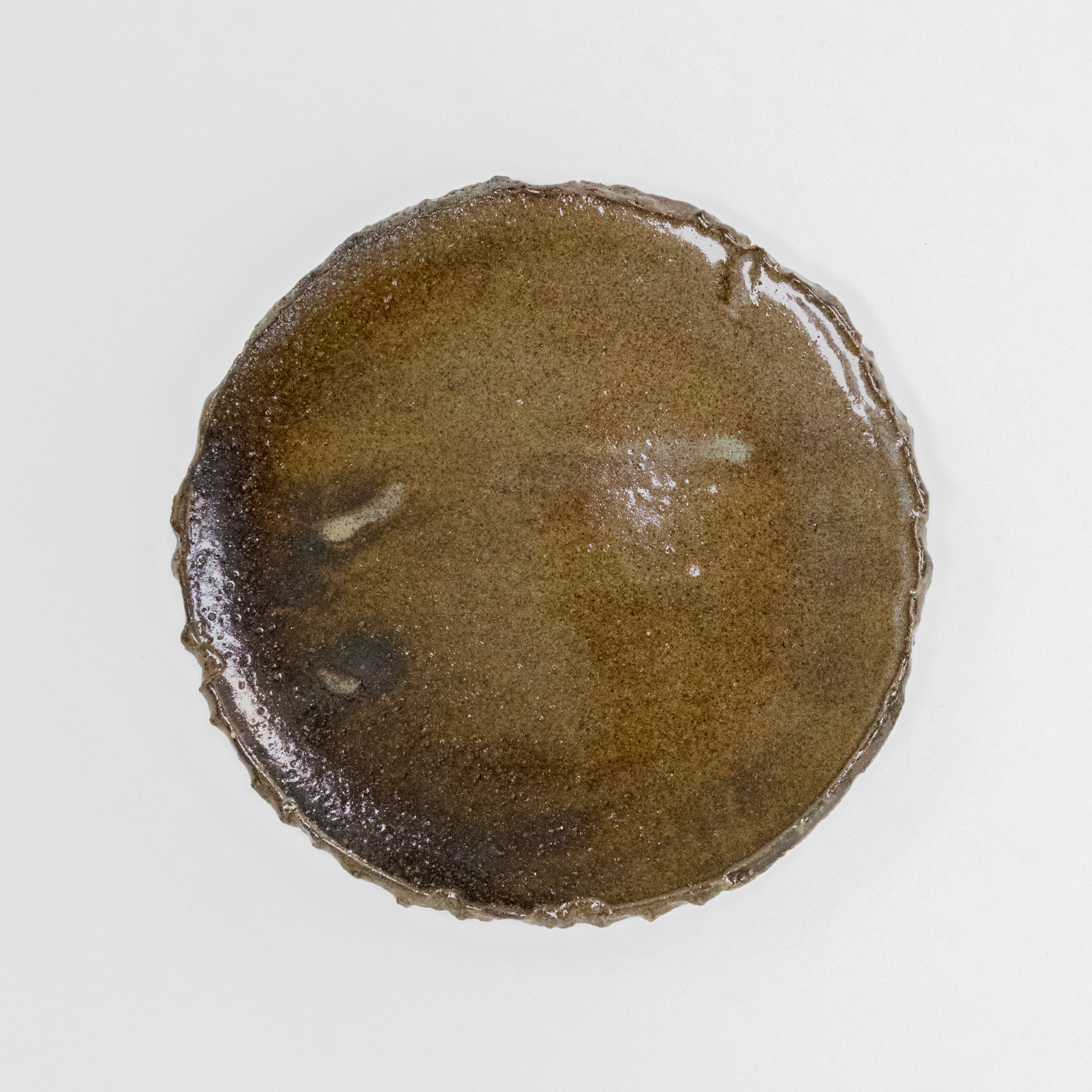 縁は土がちぎれた質感をそのまま残して仕上げており、裏面は釉薬をかけず、土本来の質感を感じられるようにしています。