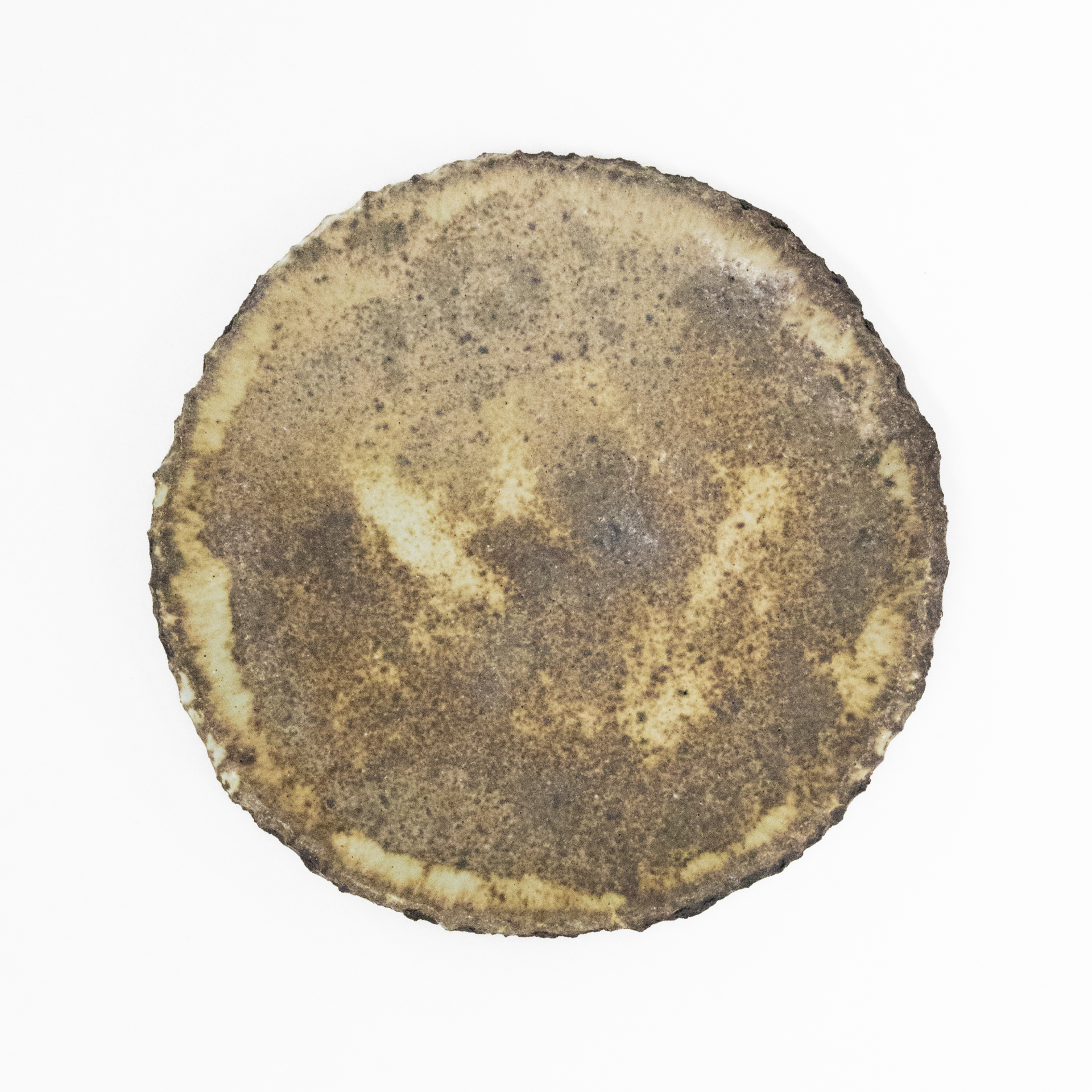 直径約 15 cm、厚さ約 0.5 cm の、やや粗い表面を持つプレートです。