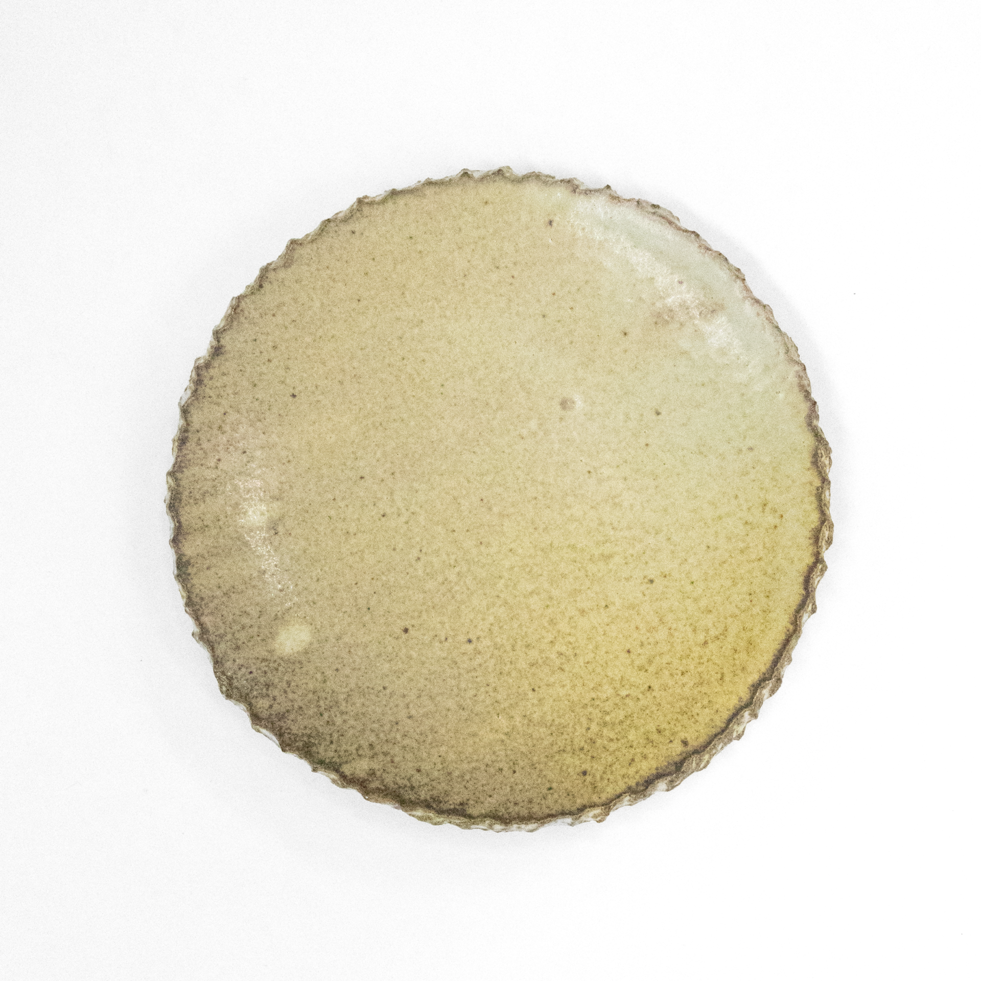 縁は土がちぎれた質感をそのまま残して仕上げており、裏面は釉薬をかけず、土本来の質感を感じられるようにしています。
