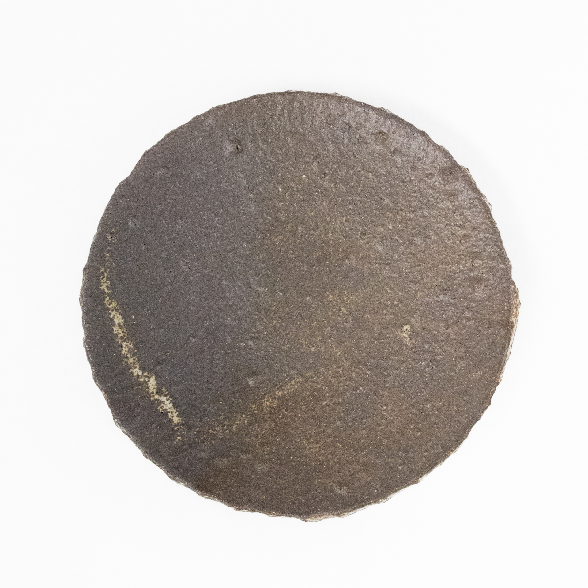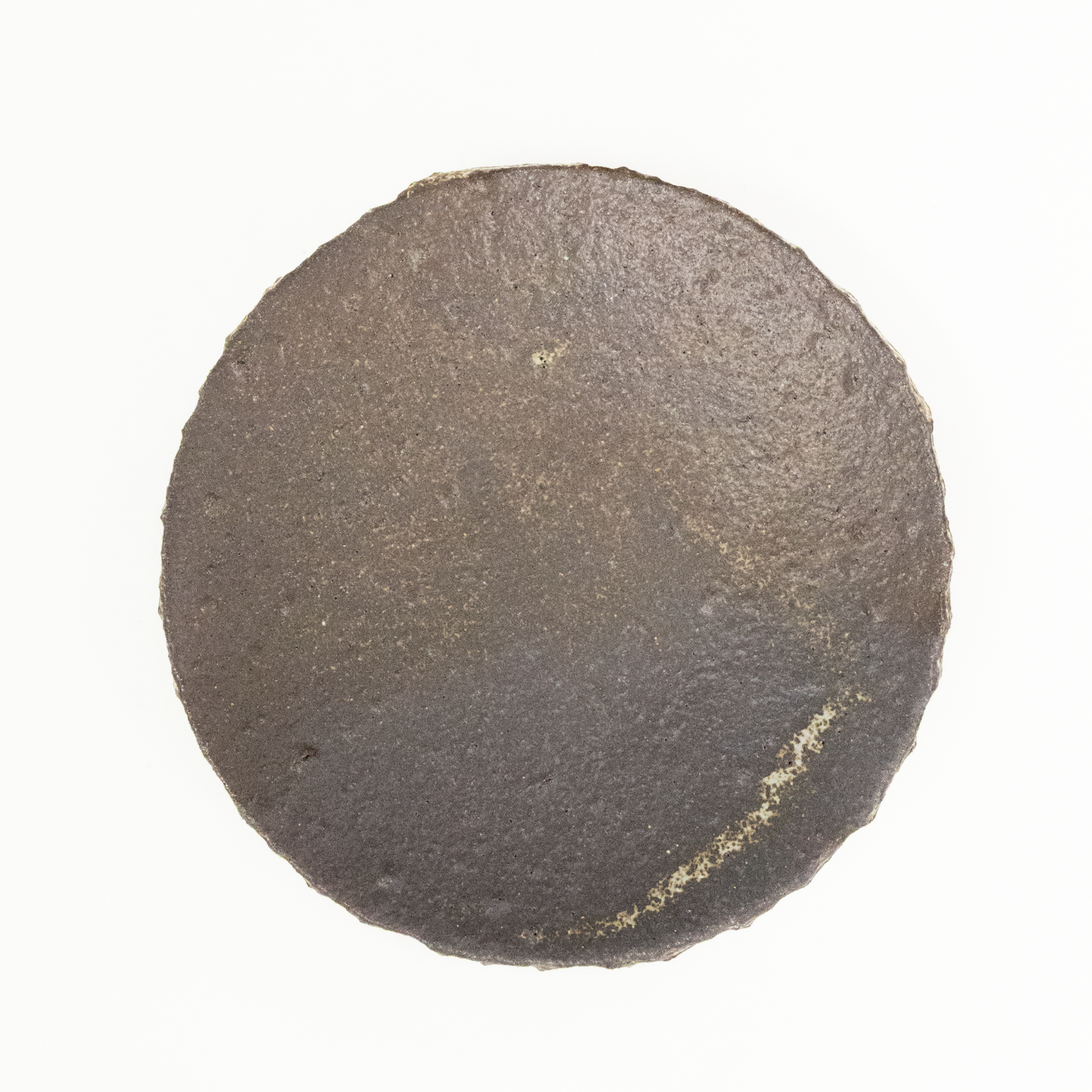 A footed plate approximately 15 cm in diameter, 3 cm in height, and 0.5 cm thick, with a slightly rough surface.