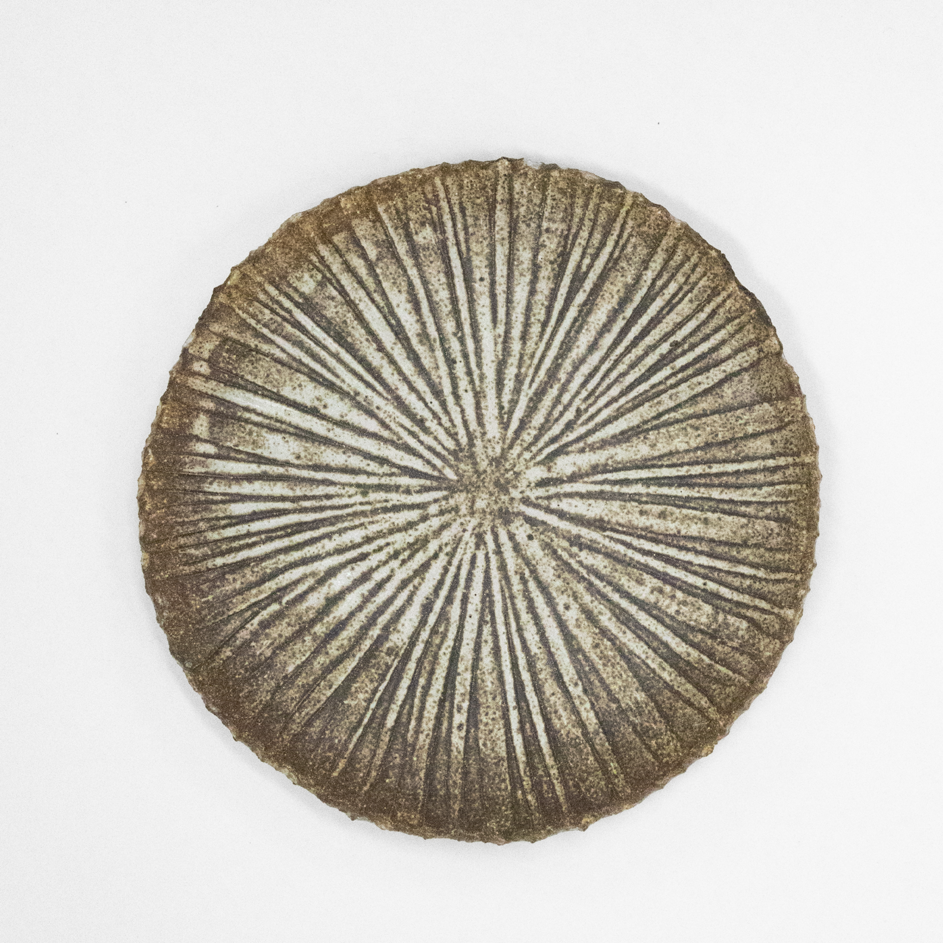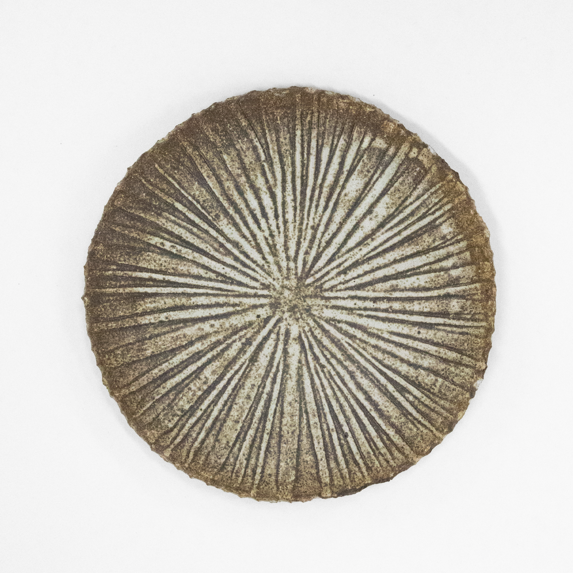 直径約 21 cm、厚さ約 0.5 cm の、やや粗い表面を持つプレートです。